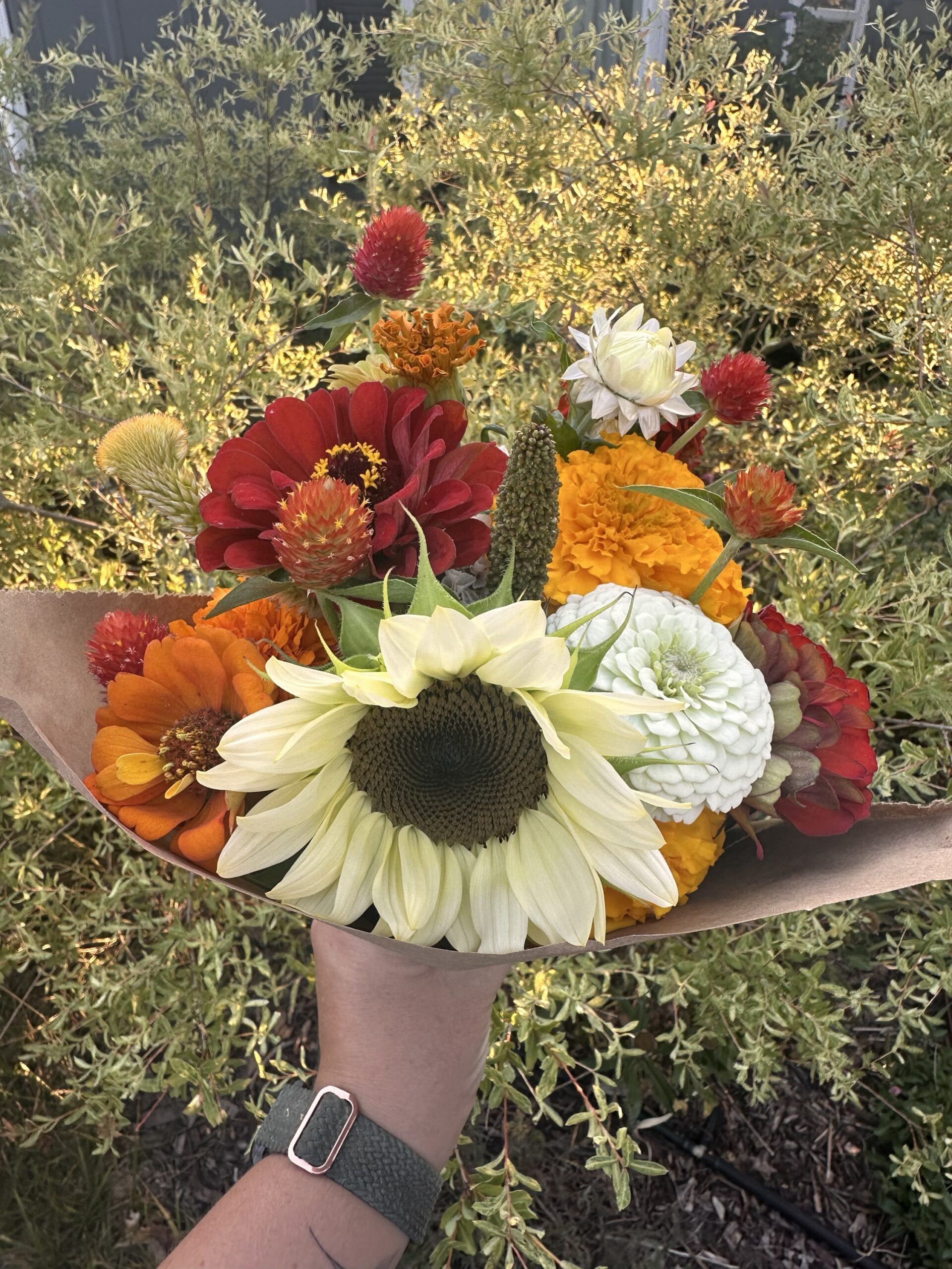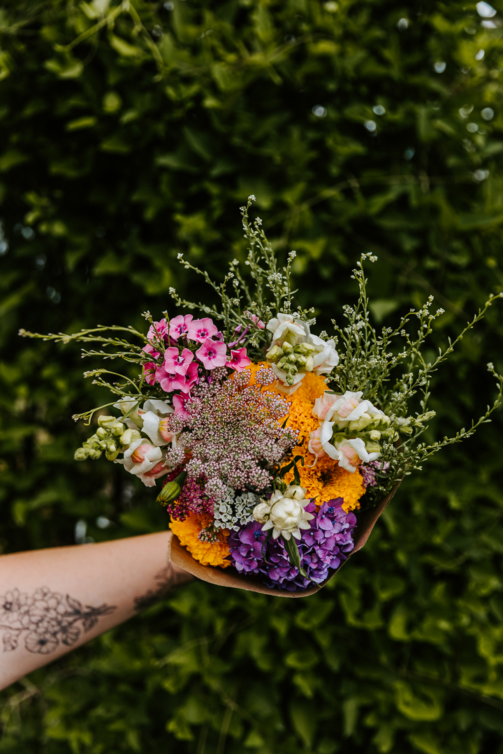 Each bouquet will vary. Please leave a note if you would like custom colors and we will do our best to accommodate! All grown right here in Creston!